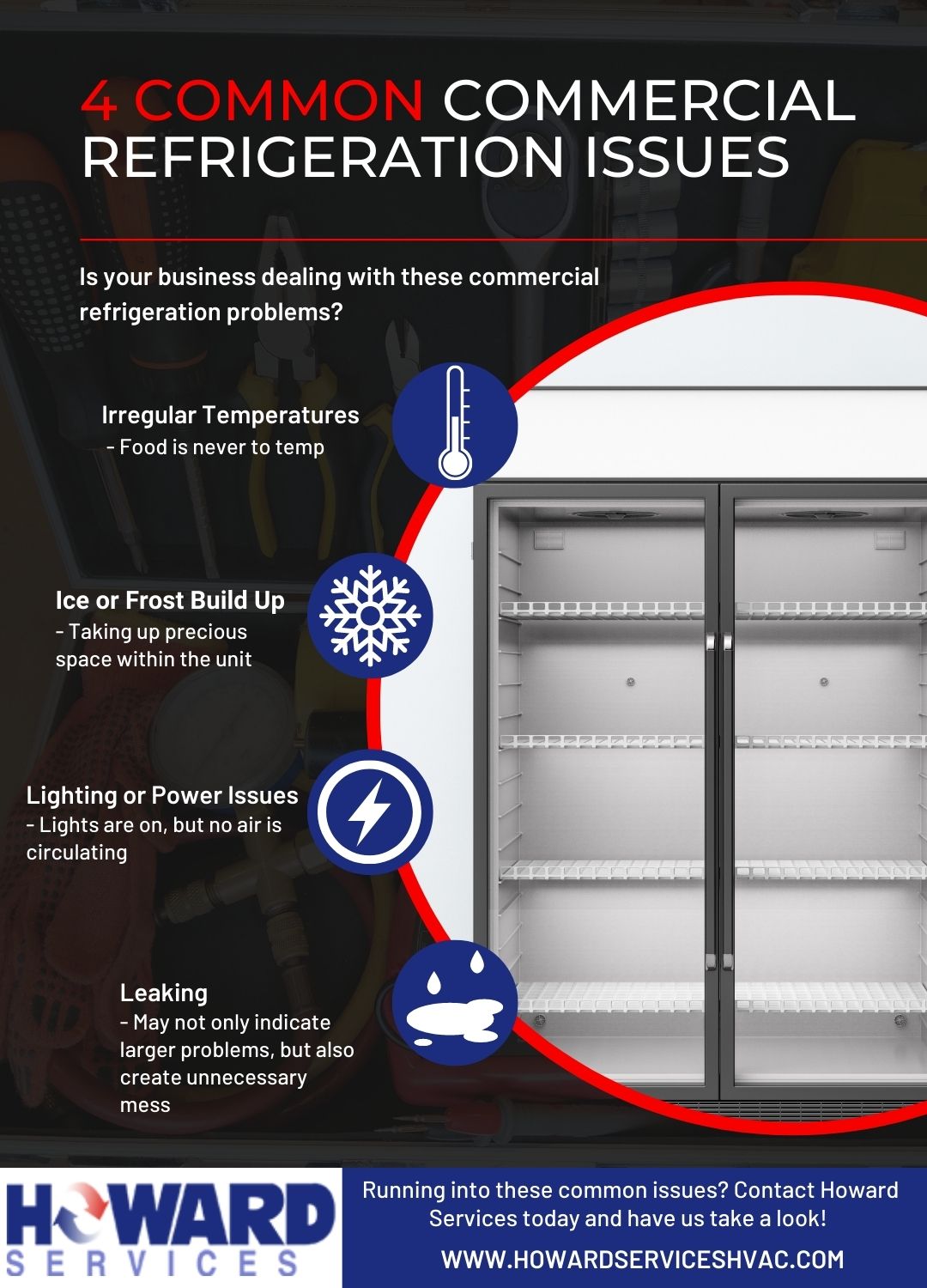 When you find your business dealing with these common refrigeration issues, it is best to be proactive and contact your local professional as soon as possible. At Howard Services, we are the team to go within Jacksonville as we have more than50 years of experience helping clients with refrigeration repair and other HVAC-related problems. Contact us today to get started!