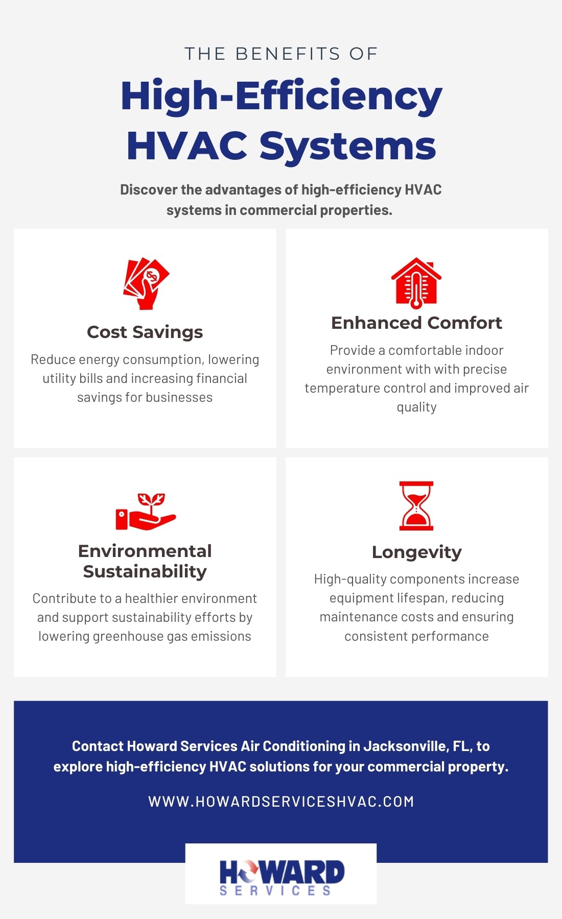 As your trusted HVAC contractor in Jacksonville, Florida, Howard Services Air Conditioning is committed to providing our clients with the best solutions for their heating and cooling needs. In today’s blog, we will discuss energy efficiency upgrades for commercial HVAC systems and how they can benefit your business.