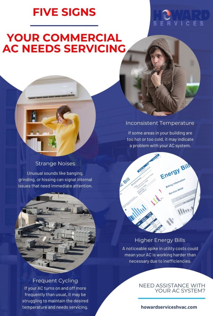 Prioritizing AC maintenance for your commercial HVAC systems is essential for efficiency, longevity, air quality, and cost reduction. Partnering with a reliable HVAC contractor in Jacksonville, FL, can ensure your systems are always running at their best. Don’t overlook the importance of regular maintenance; invest in your business’s comfort and bottom line with expert commercial AC services by Howard Services today!