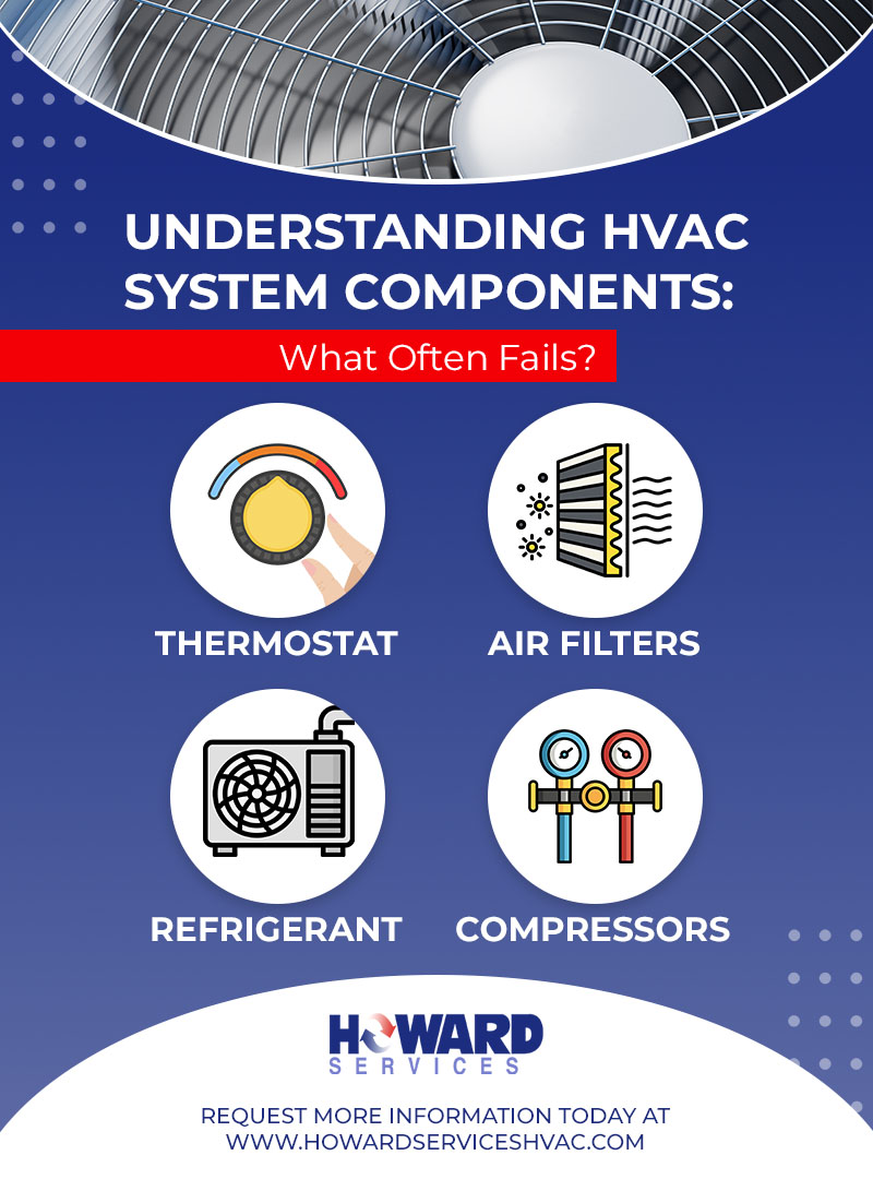 Understanding the components and common failures of your HVAC system can help you catch problems early and ensure optimal performance. If you suspect an issue or need a thorough inspection, contact Howard Services today. Our team of experts is ready to help keep your HVAC system running smoothly!